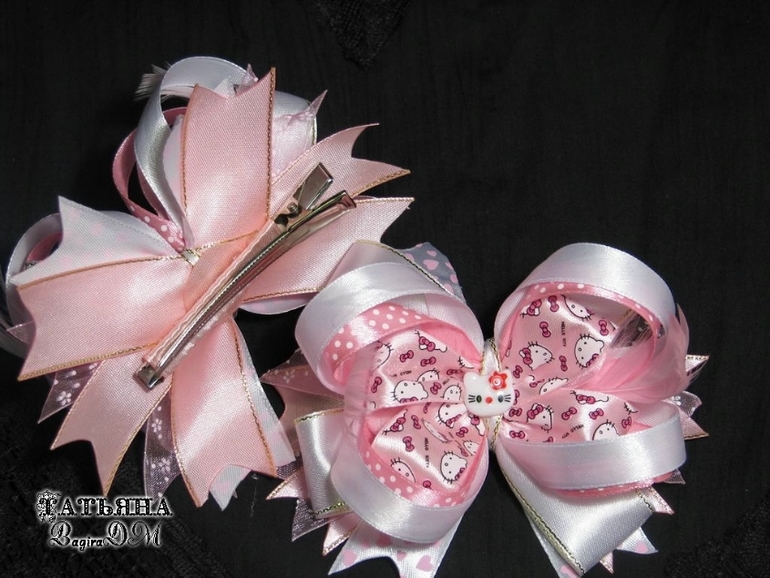 Ну и отойдем от школьной темы) Эти американские бантики Китти давно мечтала сделать своей доче))) Мечта сбылась!)) Размер: 12 на 9 см, крепление заколка-уточка 7,5 см. Большие и очень нарядные, ребенок в восторге!)