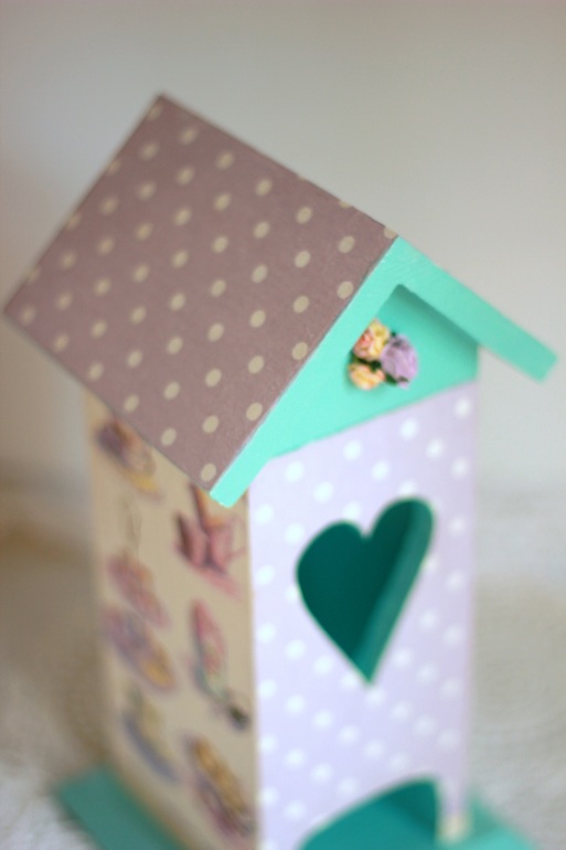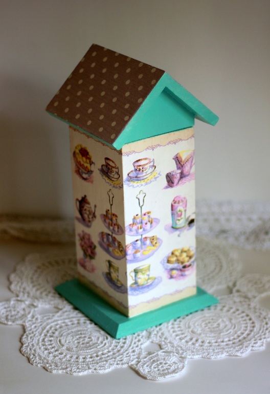 ДекупажСовместный декупаж "Чаепитие" с Яниной Монаховой продолжается, вот мой домик подоспел. Делала его высунув язык, домик - сложная для меня форма. Такой он у меня получился сильно-мятный, довольно высокий и увесистый)))