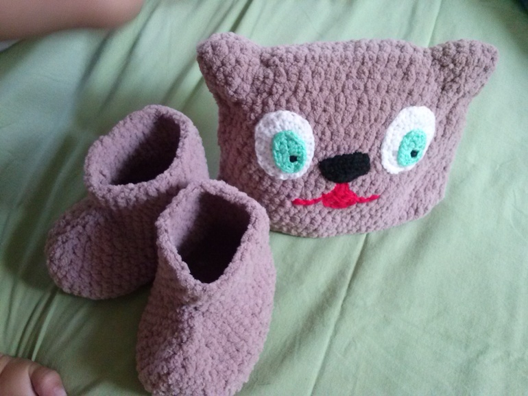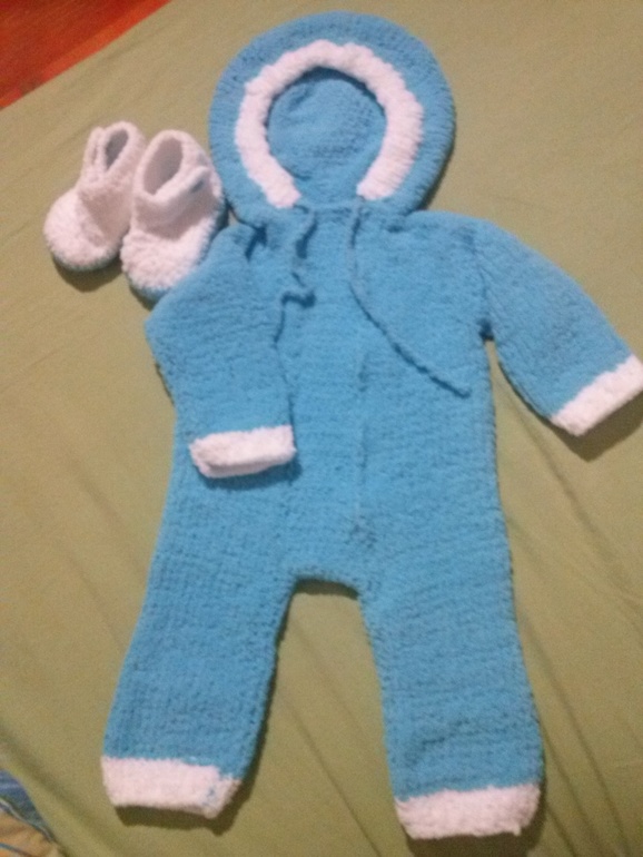 Мне очень понравилось вязать из плюшевой пряжи,пока тренировалась на малыше,но думаю скоро уже перейду на сыночков старших,так как уже просят "свяжи нам что-нибудь тепленькое".Обделять не буду,правда хочется что-то связать.А пока на ваш суд следующее.Идею комбинезона нашла на просторах ББ,только немного видоизменила.А как можно оформить сапожки ?Подкиньте идейки.