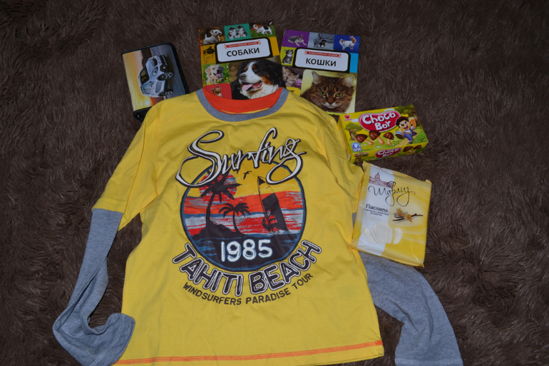 . И модные футболки на вырост. Машенька спасибо большое за чудесные подарочки, очень рада нашему знакомству и общению!!!! От всех моих мужчин и меня виртуально
