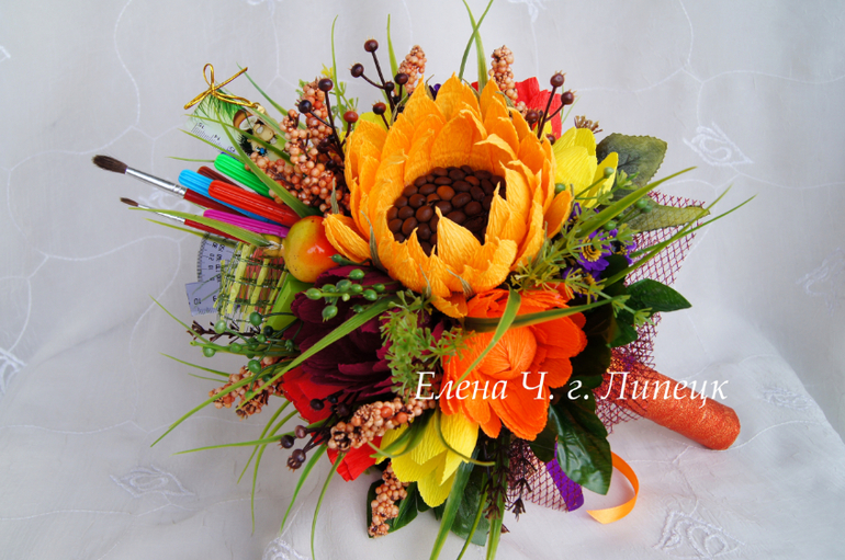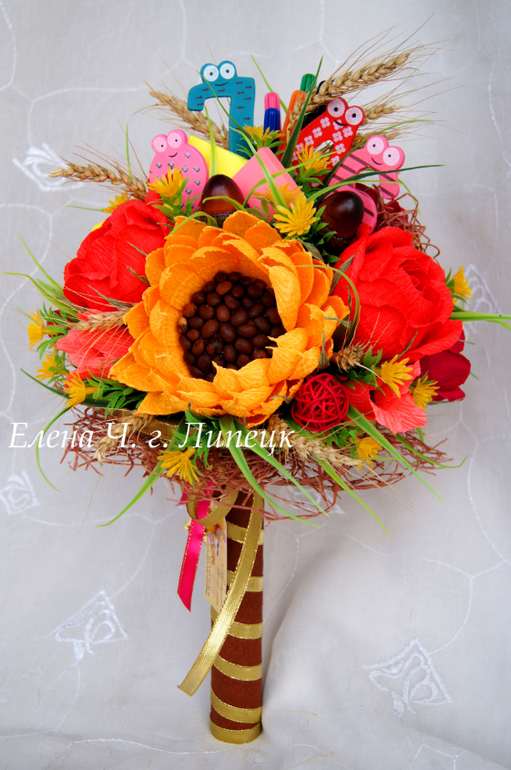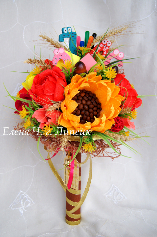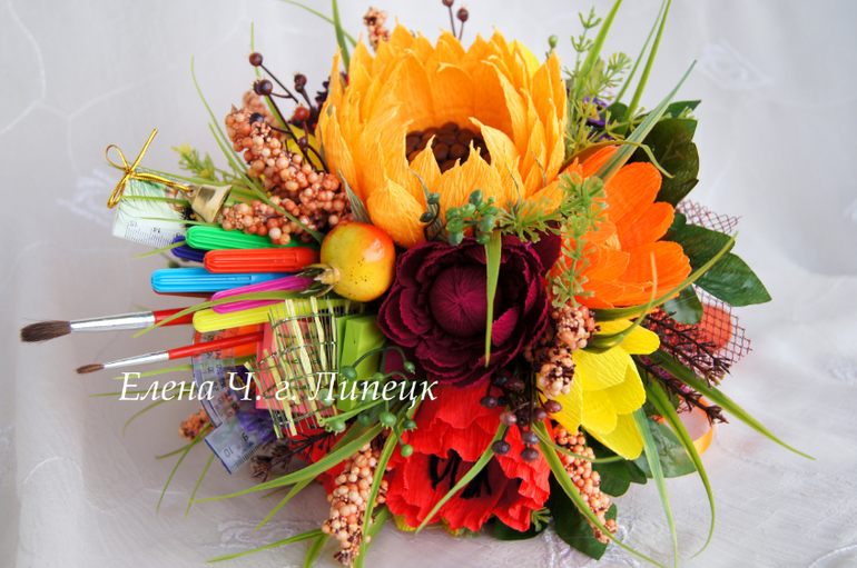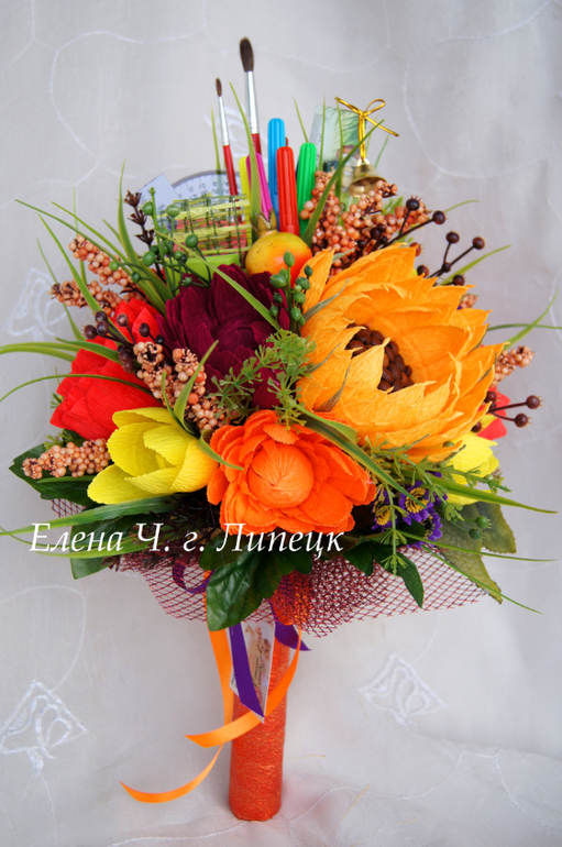 Времени не хватает, доделываю последние заказы и на море отчаливаю на выходных!!!!!!!!!!!!! Урррряяяяяя!!! Как долго я ждала этого отпуска, несколько раз поездка откладывалась (с июля на чемоданах сижу) Ну вроде в субботу точно стартуем. Я сегодня с корзинкой и школьными букетами. Много фото под катом.