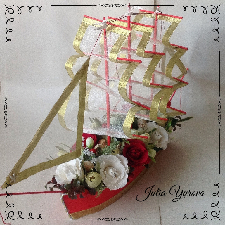 Привет! спасибо ) ) )вот он, красненький путешественник на фото. посылала в разобранном виде, как Елена советовала. палуба с цветами и мачты с парусами по отдельности. обматала калькой и коробка подошла тютька в тютьку. да и доехал всего за семь дней! ай да почта России))))