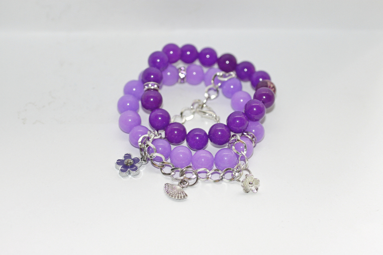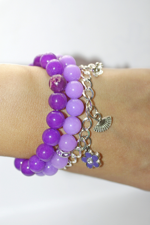 -три браслета (два из натуральных камней и серебряная цепочка)