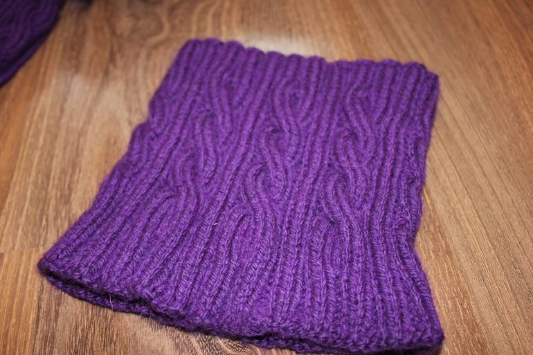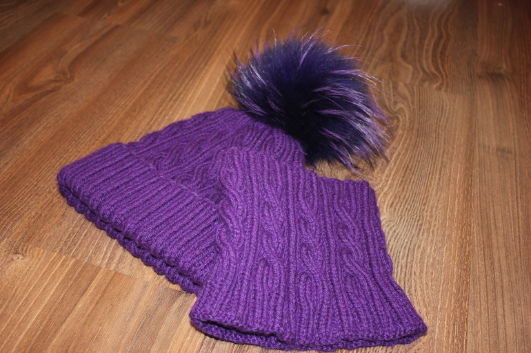 Тоже очень люблю фиолетовый :) Сначала вязала на сгибе изнаночные, почти связала шапку, померяла и не понравилось. Очень грубо смотрится ряд изнаночных на отвороте, пришлось распускать все. Перевязала так намного лучше. Отворот просто паром немного обдала для фиксации и все.