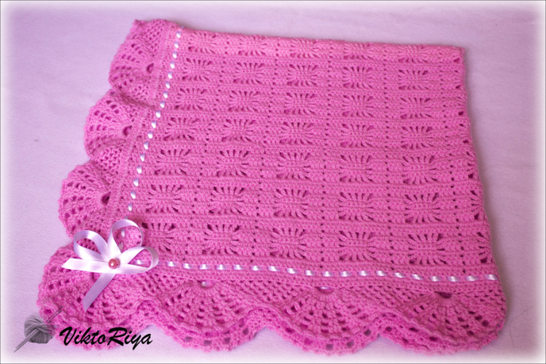 У наших родственников скоро будет прибавление,через 3 недельки.Долгожданная девочка!!!!!!!А то одни мальчики у всех!!!!Я давно задумала порадовать будущую мамулю скромным презентиком,сделанным своими руками,а именно этим пледом.Вязала его уже один раз,когда сами ждали сынулю младшего.Очень понравился процесс!!!Он так классно вяжется!!!Спасибо за когда-то организованный онлайн!!!!