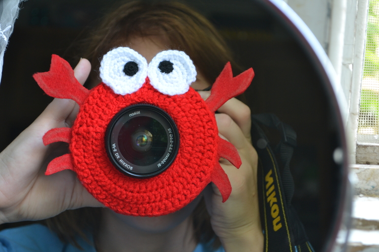 Отлично получилось. Сама такую идею вынашиваю. Можете отрыть секрет, на объектив надевается при помощи резинки этот крабик?