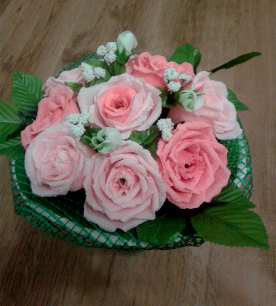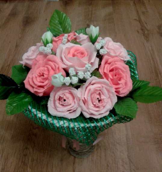 Лилия, розочки отличные, сетку я бы только взяла более теплого зеленого цвета, маленькие розочки чуть углубить и можно листики розочек разрезать на 3 и пустить по кругу :)