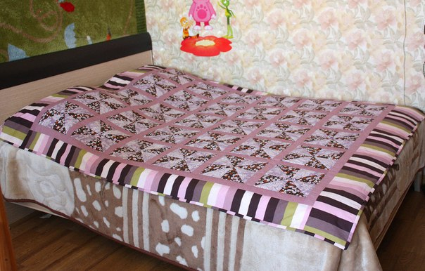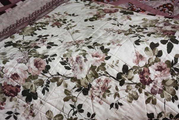 Это лоскутное одеялко было сшито на одном вдохновении от тканей, сразу все сложилось в единую картинку,ткани так сами все за себя и говорили, шить было одно удовольствие.
