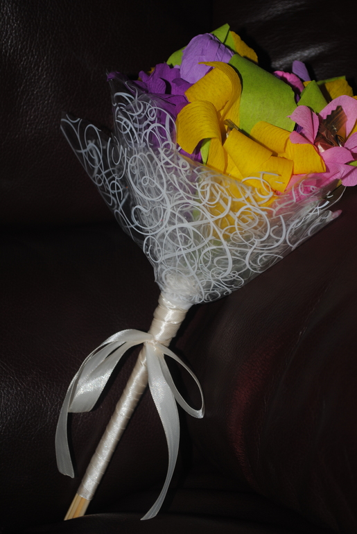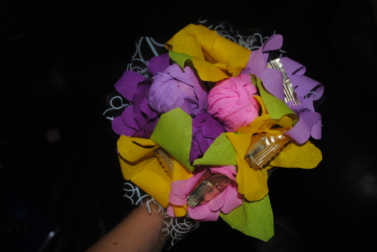 Видно, что вы очень добрый и отзывчивый человек! Но с таким букетом, я думаю идти не стоит, если бы мне такое подарили, я бы обиделась. Купите лучше коробку конфет, чай, печенье в красивый кулек все и это лучше, чем дарить поделку для детского сада, не обижайтесь, говорю как есть, и зря девочки нахваливают.