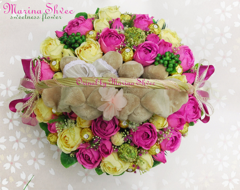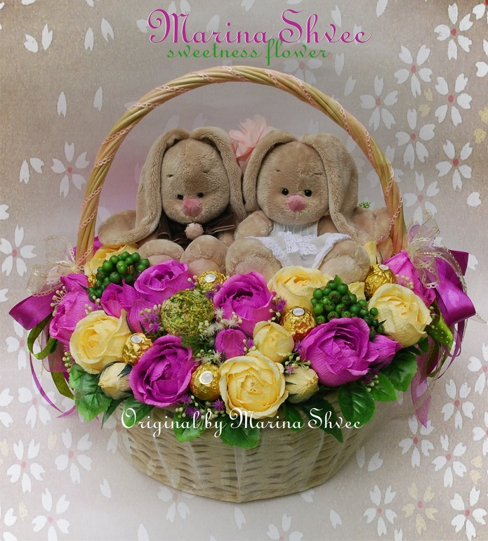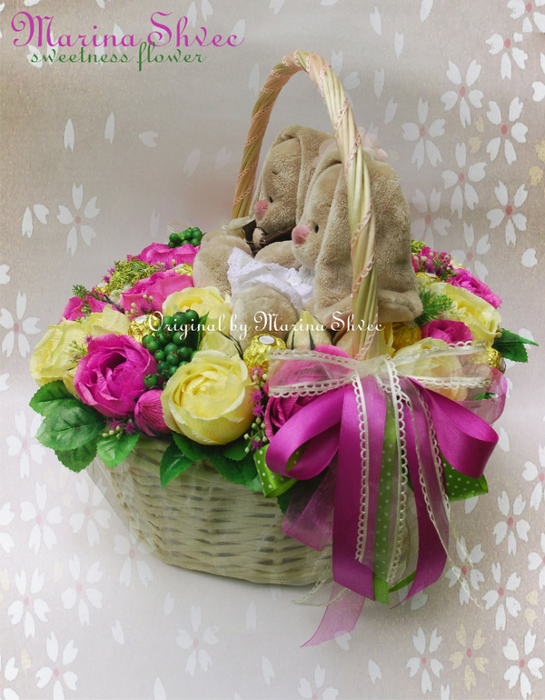 Мариша, красота!!! Твои розочки неповторимы! Я обожаю смотреть на твои работы, прям ойкнула как закончились фото....маловато показалось...корзина с розами и заюшками шикарная!