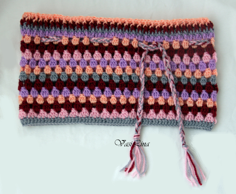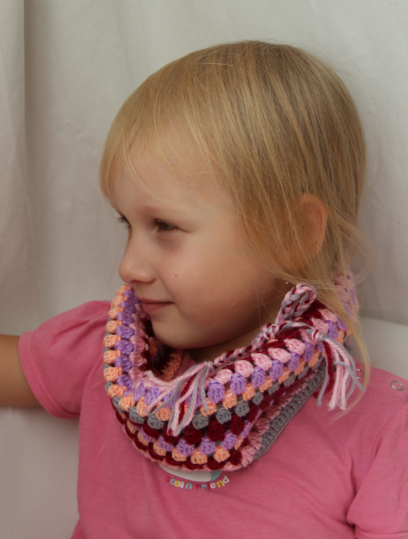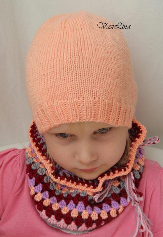 Из остаточков ниток, из тех, которые ранее использовались для вязания шапочек за вечер создался снуд