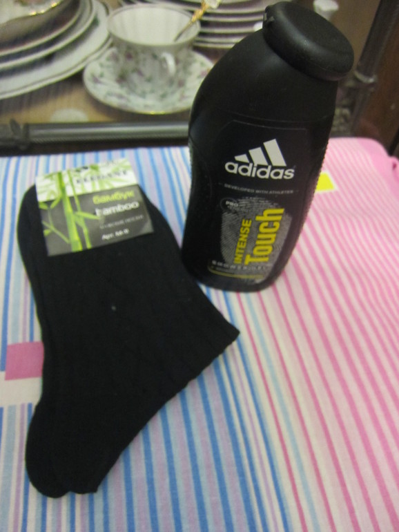 Это нашему папе:носочки и гель для душа с обалденным запахом