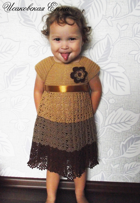 Связала на заказ еще одно такое платье, только для малявочки 86-92 рост. Аксессуары они не захотели))) Пряжа Ализе Фореве, крючок №2. Позирует моя кудряшка))))