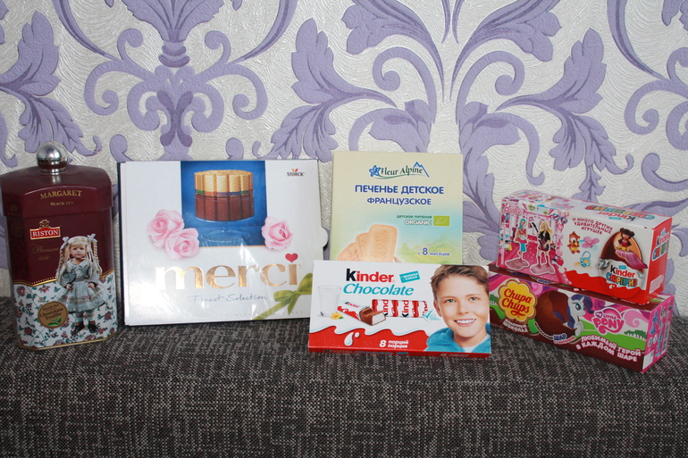 Чай и сладости для детишек. Вика сейчас в другом городе отвезу ей в понедельник. Пищать от радости сто процентов будет. Любит она подарки.