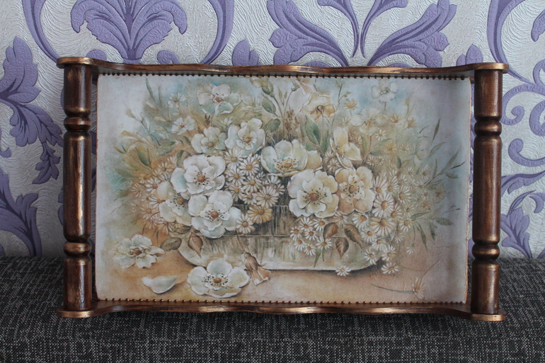 Обалденный столик - поднос. Это Людмила сделала сама. Ручная работа. Обалдеть такой красоты у меня еще не было и не надеялась.