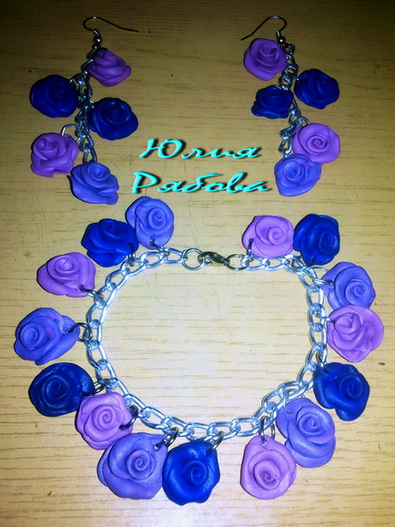 Полимерная глина+цепочки+карабин+крючки для сережек=то,что на фото))) Это третий мой комплект из полимерки, на удивление очень практично в носке))) море задумок,только с дитем особо не разгуляешься,то что в беременность(например вот это)))