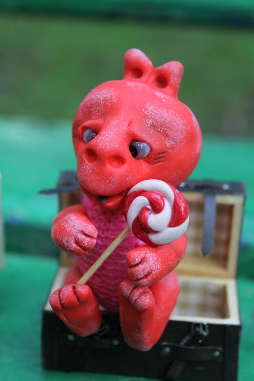 Оба смоделированы вручную из полимерной глины, глаза стеклянные, тельце мягконабивное. Мирсен очень просила красненького - желание принцессы закон - вот такое красное чудо получилось. Мируша сказала, что это дракончик и назвала ее Мэнда