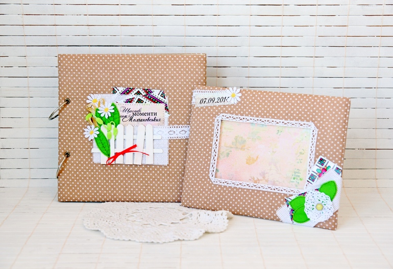 СкрапбукингВот такой подарок семье брата на венчание придумала заказчица. Альбом именной, фоторамка с датой свадьбы