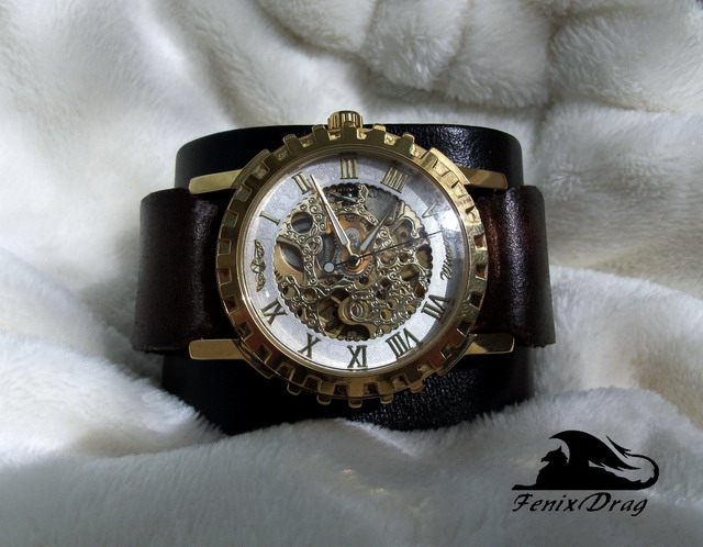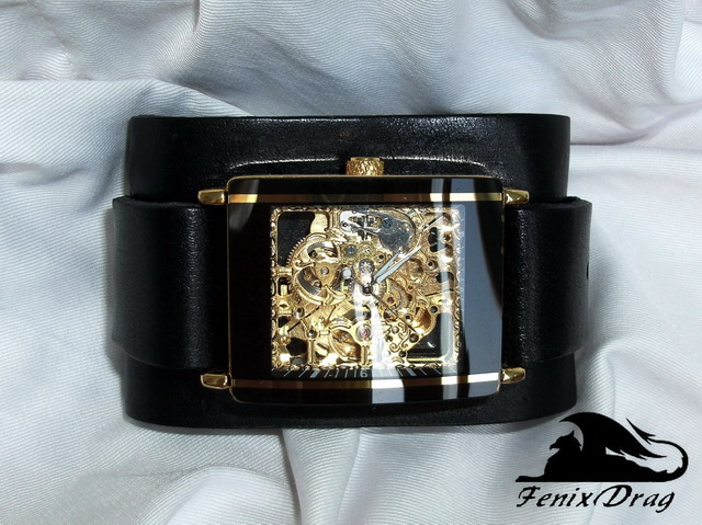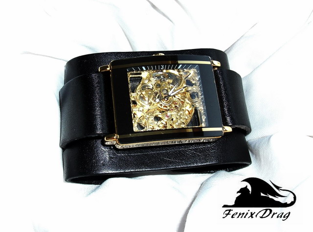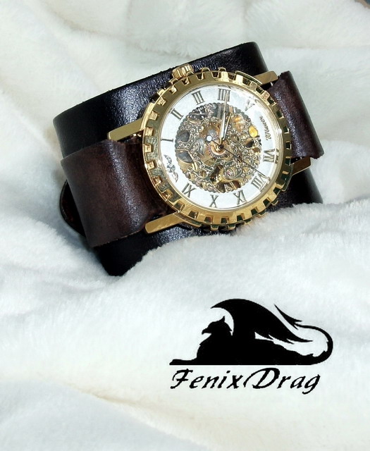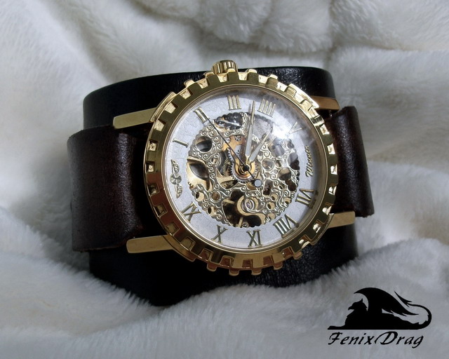 Широкие стильные кожаные браслеты с механическими красивыми часами в стиле Стимпанк