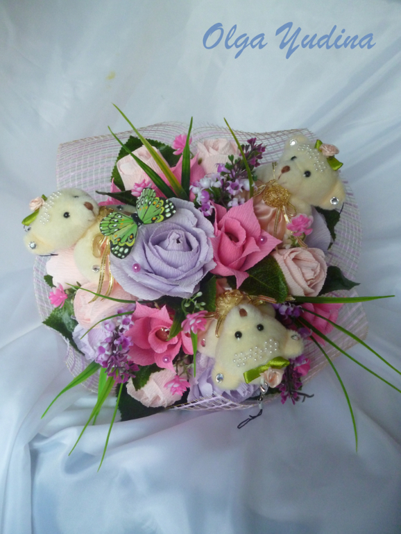 Леночка,спасибо!!!В основном все букеты до выхода на работу были,после двухнедельного отпуска,а теперь одну штуку три вечера делаю)))