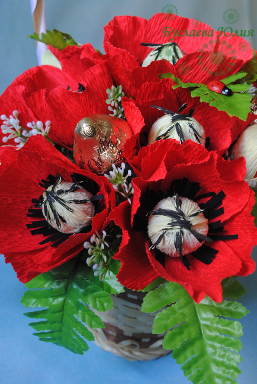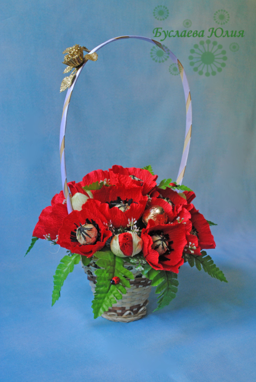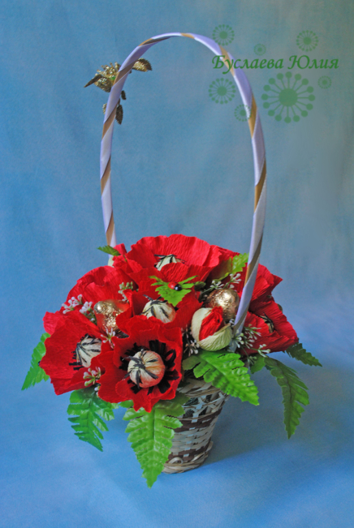 Впервые делала маки, очень яркие они получаются в композиции. Прямо сочное лето!Обязательно буду использовать этот цветок в дальнейшем.