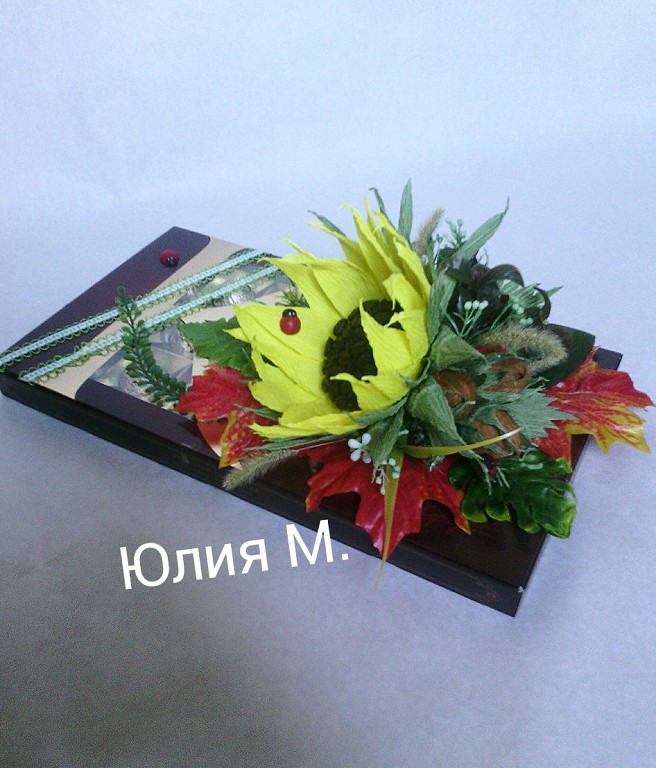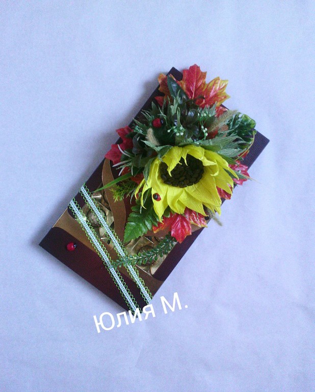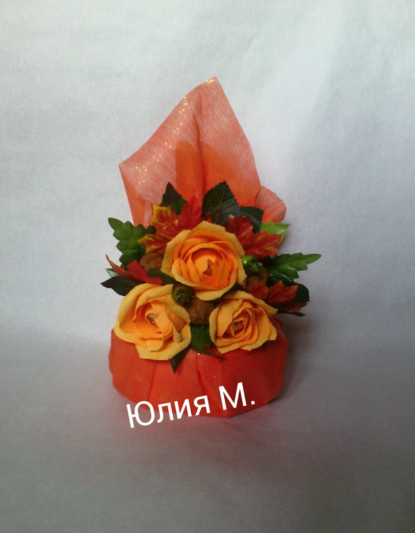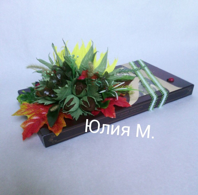 Маленький букетик, украшение в осенней теме и для наших воспитателей коробочки Мерлетто, кстати очень вкусные конфеты, не смотря на цену.