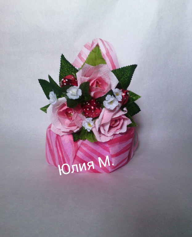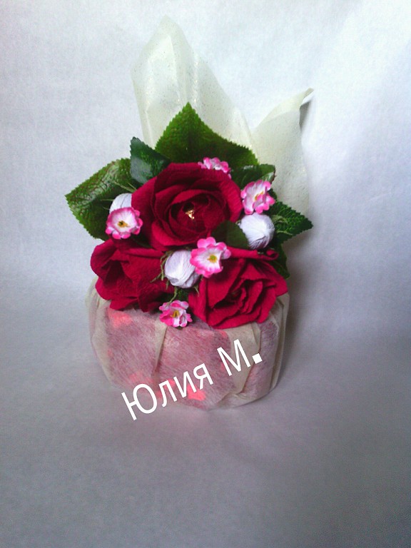 Юля, коробочки суперские и букетик такой яркий. Вобщем все классное! Юля, а если не секрет на коробочках круглых композиция съемная? А как она крепится? Мне так нравятся, когда коробочки так завернуты, только не пойму как это делается и как выглядит с обратной стороны