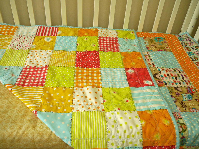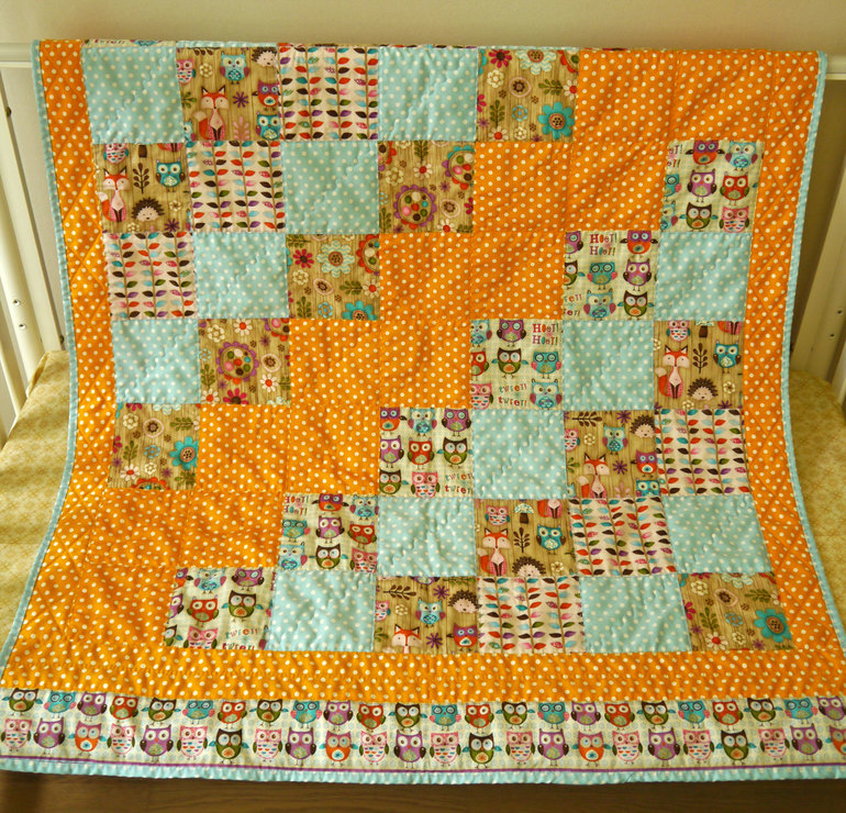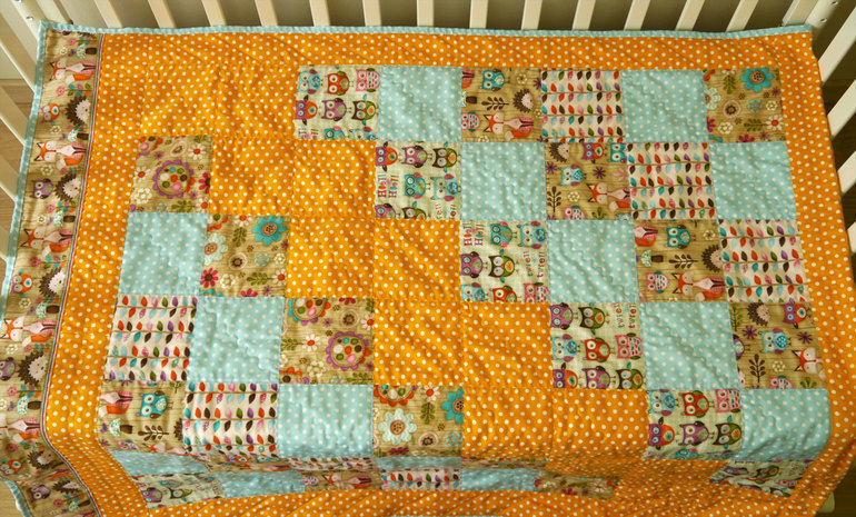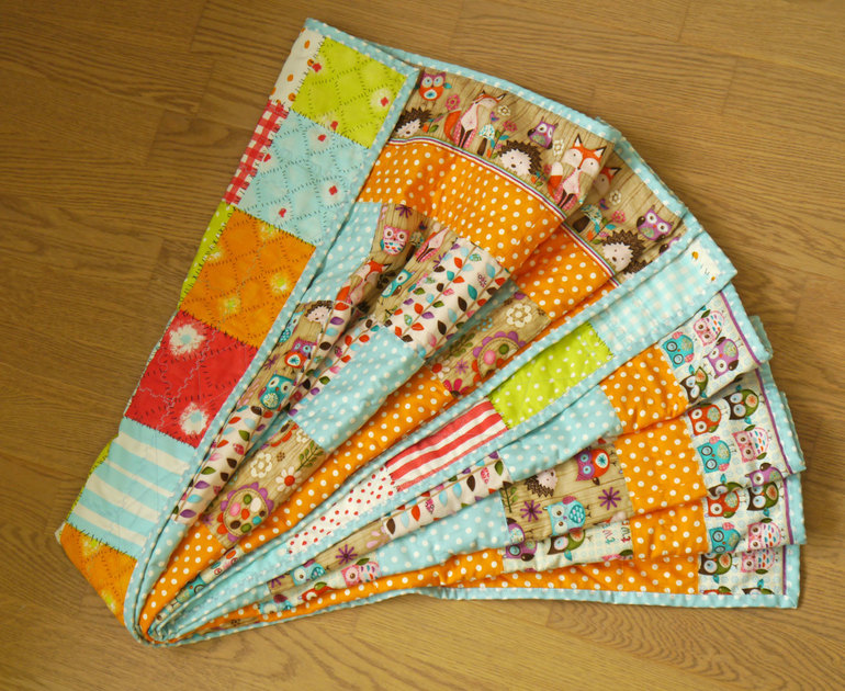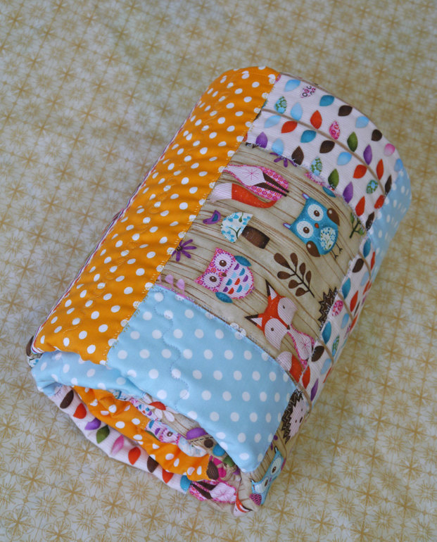 Лена, размер 110 на 140см. Я стараюсь не использовать синтепон в качестве наполнителя. Если только заказчик очень настаивает. Я использую специальный хлопковый (либо бамбуковый) наполнитель для одеял и квилтов. Лично моё мнение, что для детских одеял он более подходит;) Этот наполнитель немного тоньше и поэтому одеяльце также можно использовать и как покрывало на кровать.