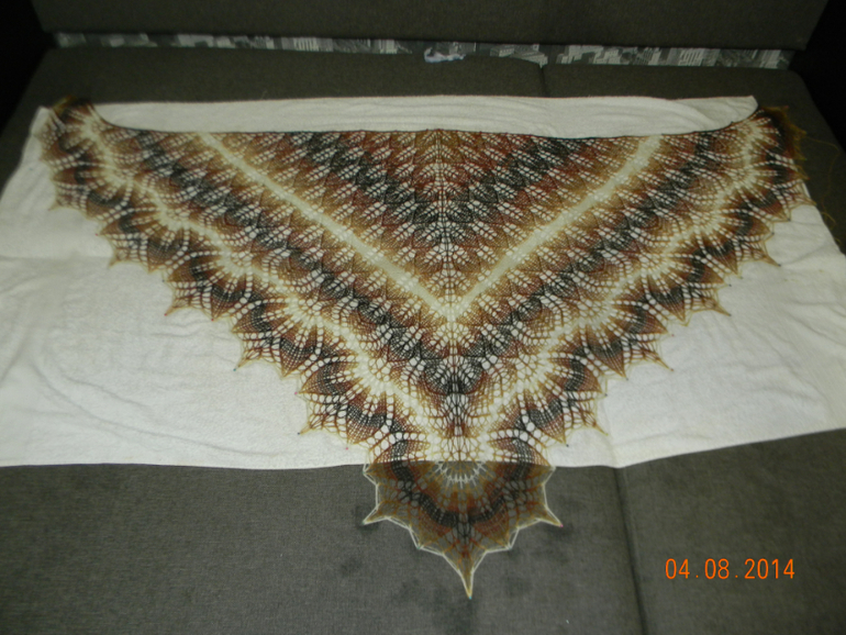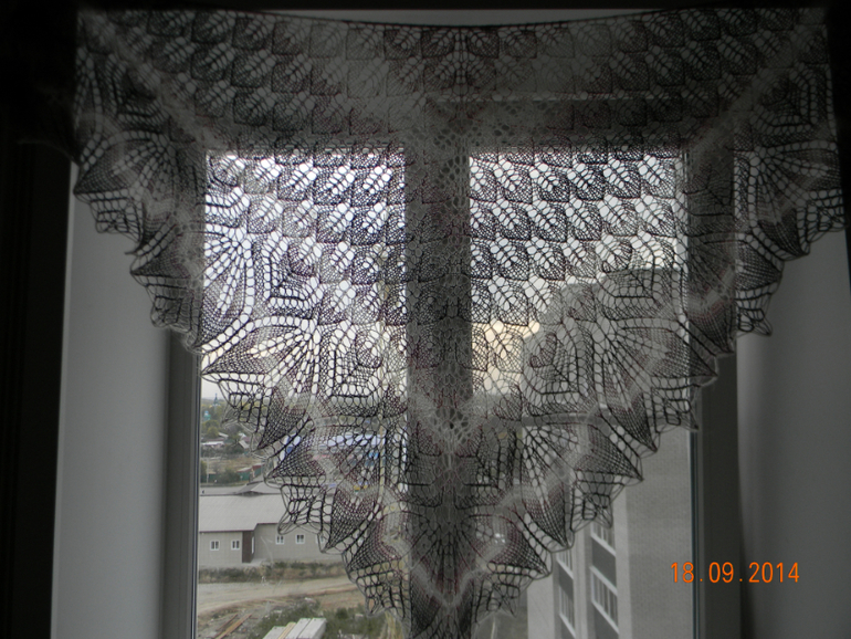 Юляш, красота! У меня руки до второй шали так и не дошли)) Мне твоя вторая расцветка очень понравилась. Нитки те же?
