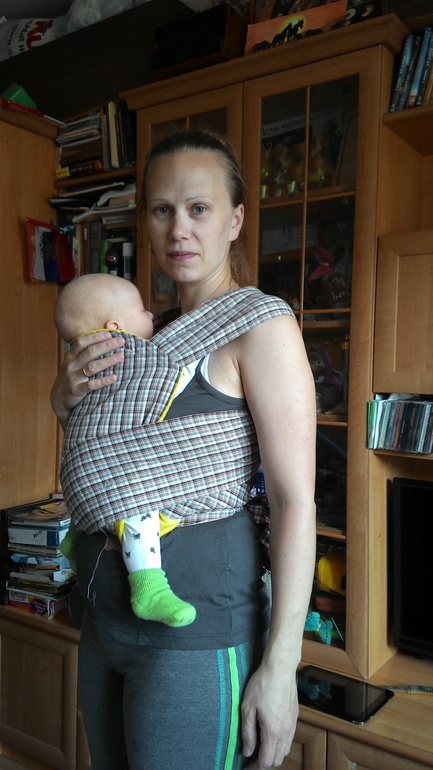 Коленочки повыше попы должны быть. Тогда и спинка должна округлиться. Чтобы когда сзади на него смотришь пяточки-колени-попа образовывали букву М. Иначе,как я понимаю,вся нагрузка на промежность,что не есть хорошо в этом возрасте.Но я сама начинающий юзер слинга,так что хз) в сообществе надо спросить)))