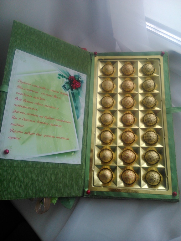 Всем рукодельницам доброго дня!Наконец-то закончила свой долгострой-журнал:хотелось бы,чтобы учителю понравилось.Сначала для поздравления искала открытку,но не найдя подходящей пришлось самой распечатывать поздравление.