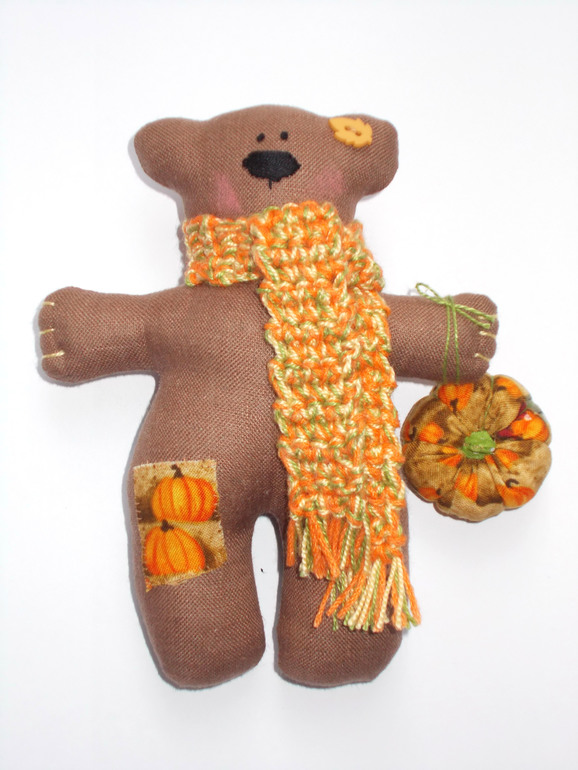 Сшила коллеге в подарок такого осеннего мишутку - сборщика тыкв))) Вообще, какое-то настроение у меня последнее время - коричнево-оранжево-зеленое))) На шейку миху повязала шарфик, а в тыковке - корица)))