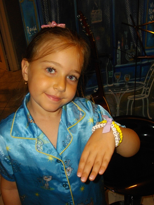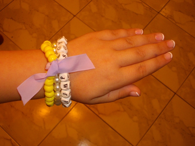 Молодчинка доця, но думаю что не стоит пока ей в дорогие бусины пускаться, пусть делает милые детские мимишные браслеты пока))