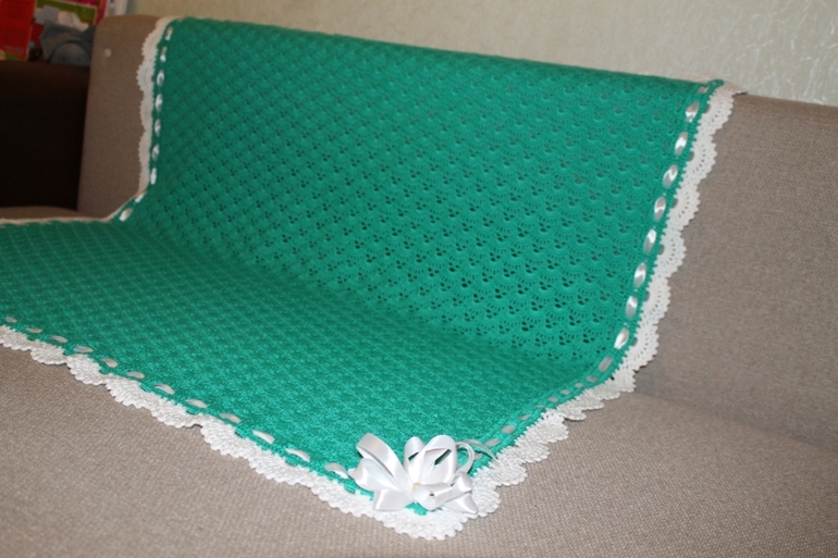Плед, связанный в августе моей новорождённой племяннице!!! Любимым цветом её мамы...и ещё колясочка