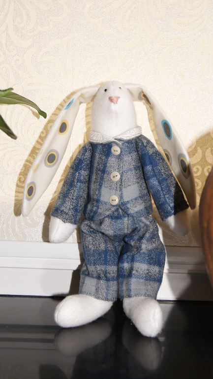 Девочки, до чего же мне это нравится!!!!! Вот мой сегодняшний заяц. Пробовала шить ещё овец, но зайцев полюбила нежно.....