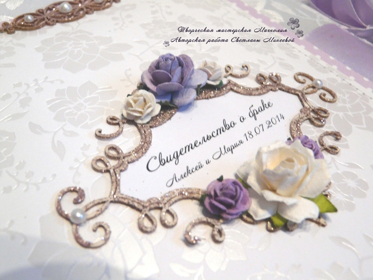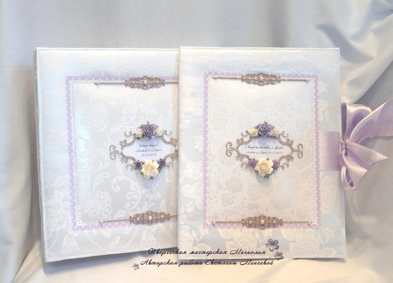 СкрапбукингЭтот наборчик является заготовкой альбома и папки для свидетельства с оформление самих обложек. Альбом формата 25*25 на 10 листов, переплет по МК Е. Виноградовой