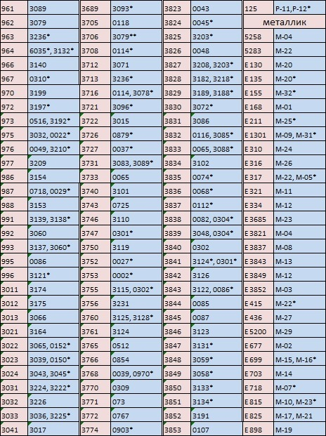 Карты цветов DMC и Гамма, таблица перевода