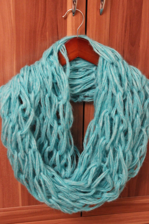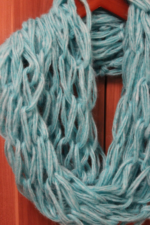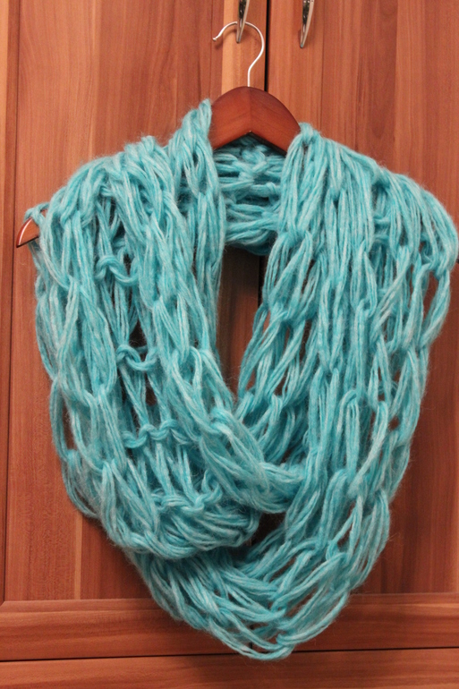 В общем у меня больная голова, а раз голова больна, то не ногам ни рукам покоя не будет. В моем случае все именно так. Прикупила я сегодня себе ниточки классные. И не долго думаю сварганила себе шарфик ))) А вязала я его не спицами, и не крючком, а собственным руками