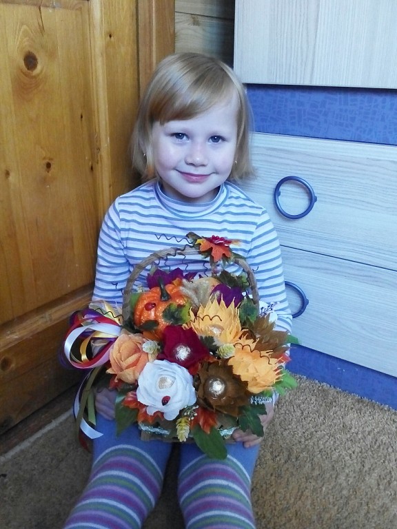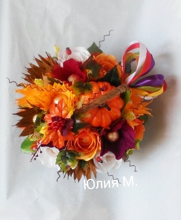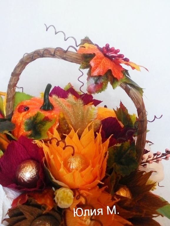 Насмотрелась на вашу осеннюю красоту и вчера вечером засела за работу, сегодня добавила последние штрихи. Скажу честно, что "лепила" из того, что было, вот так за праздники закончилось буквально все)))) Малявки мои болеют, потому и запасы не пополняются, но ничего на след.неделе выберусь.