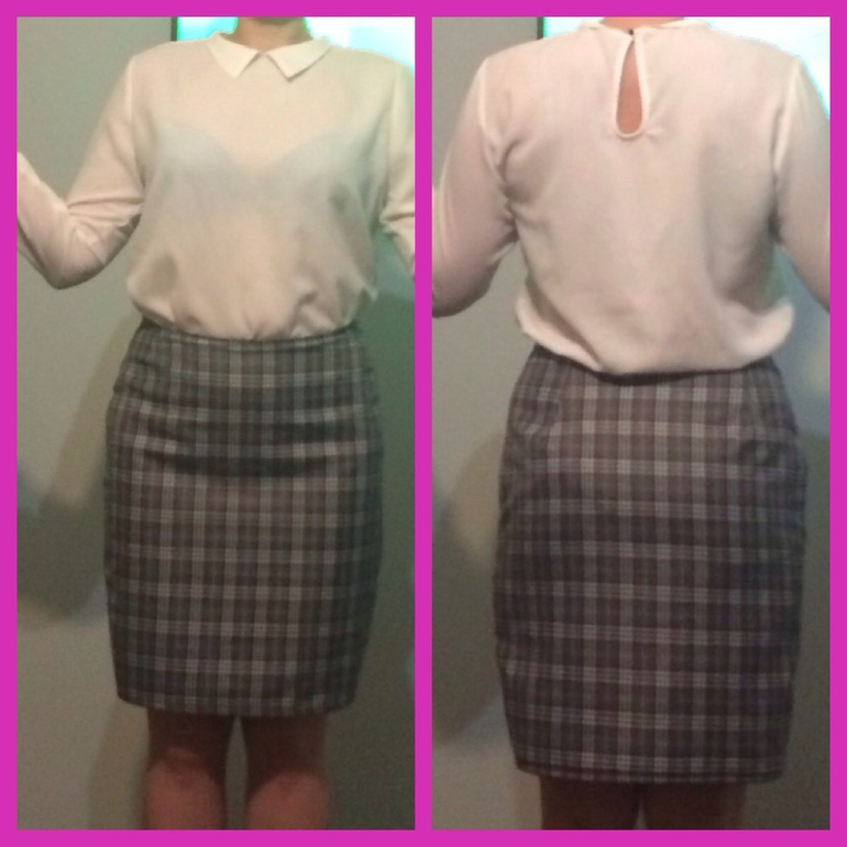 А она у вас без молнии? (молния должна быть слева). И выкройка переда +2 см, выкройка спинки -2 см. А у вас они одинаковы