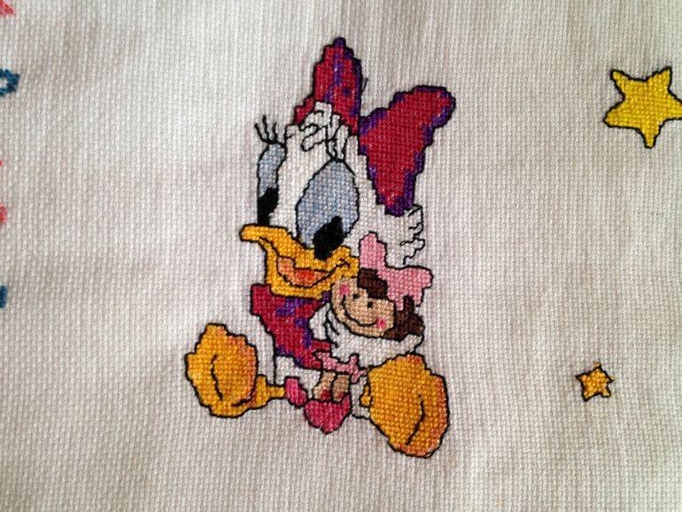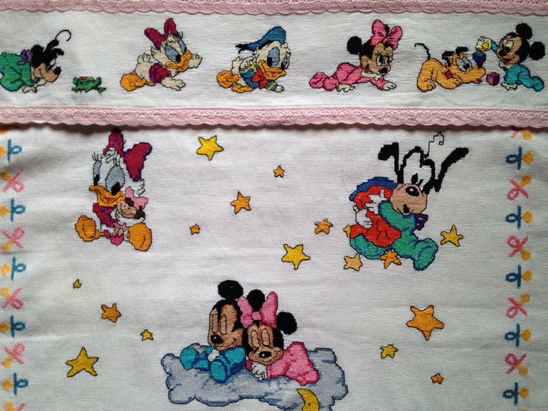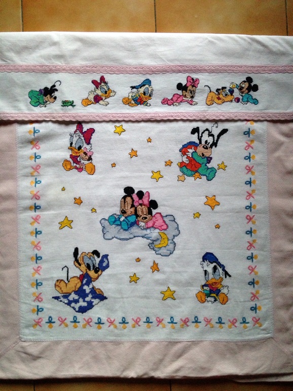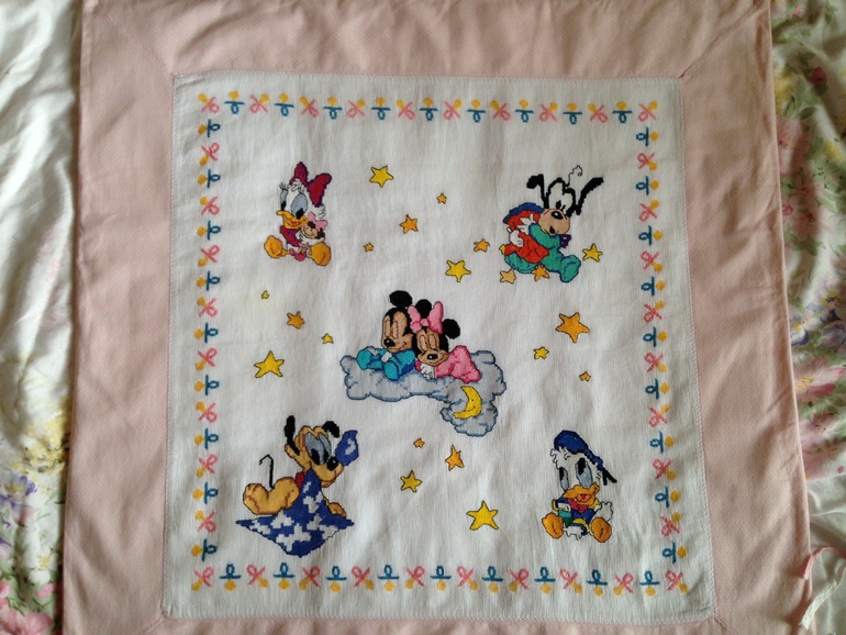 д.в,а можно узнать,вы канву на одеяло пришивали ?и вообще сначала сшили а потом вышивали?у вас изнанка какая получилась?