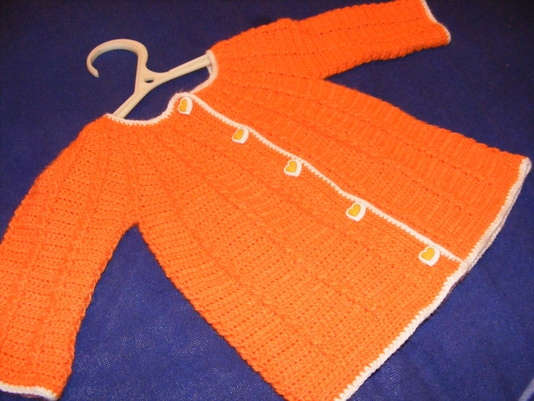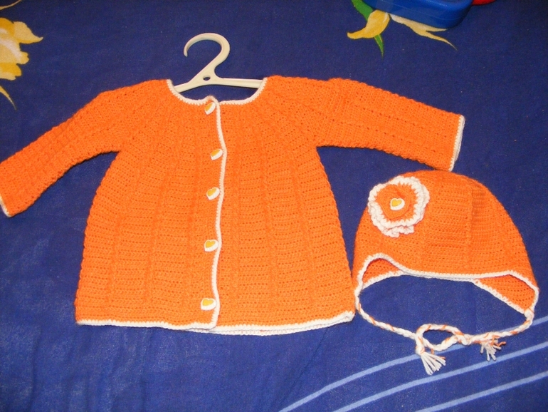 Связано в подарок новорожденной, уже подарено и во всю носится. Но сейчас идут дожди и поэтому с фотками в листьях осени не получилось...