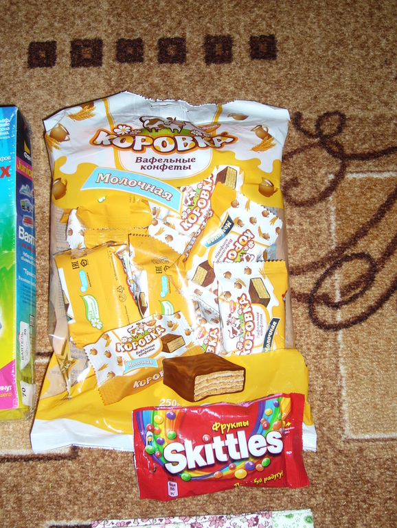 К чаю. Димкины любимые конфетки коровка! Женечка ,ты как будто знала!!! Вот угадала так угадала!