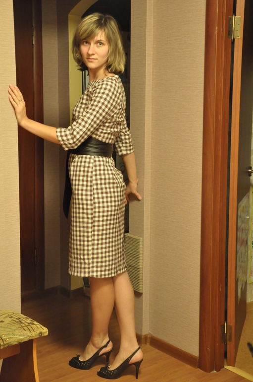Ну, а вот вариант с поясом. Ткань, конечно, очень далека от трикотажа и эластичности, вообще не тянется, если честно, зато сыпется, как Бог весть что. Ну, и, что называется, винтаж, лет 40 ей, наверное!