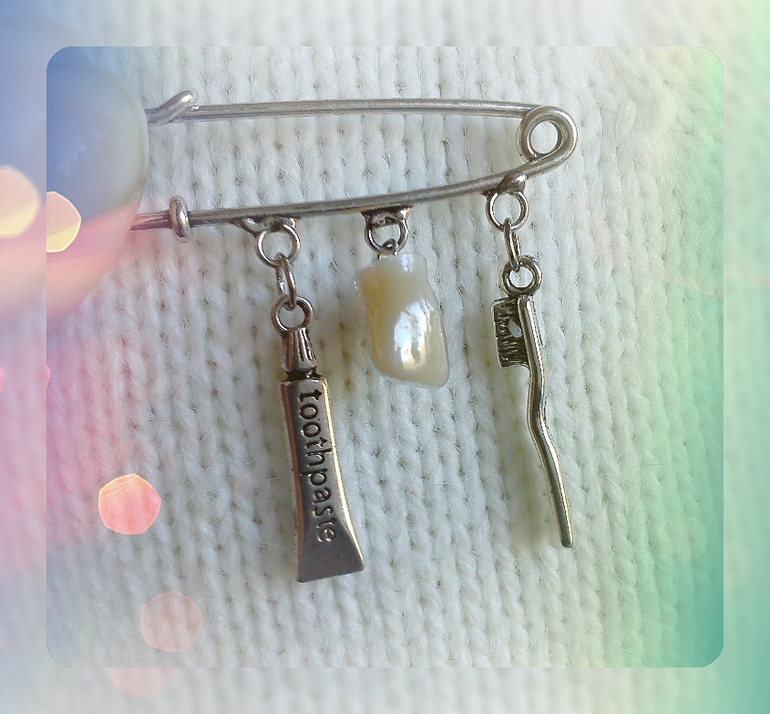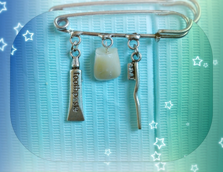 А зачем это вы здоровый зубик выдрали?Классная булавка. Тебе надо для всех профессий создать. Для боксера, например, тоже зубик, груша и перчатки)))