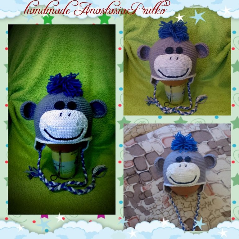 на образце на белой мъордочке меньше рядов, от этого будто нос крупнее и глаза выше сели. И на 'поворотах' мало прибавок сделали, поэтому топорщится. А в целом сипмотишная мартышка :)
