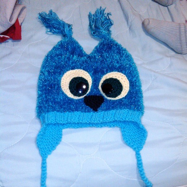 Как-то у нас резко похолодало, а я спохватилась, что у дочки нет теплой шапки (или выросли уже, или еще не доросли). И связалась вот такая Совушка.