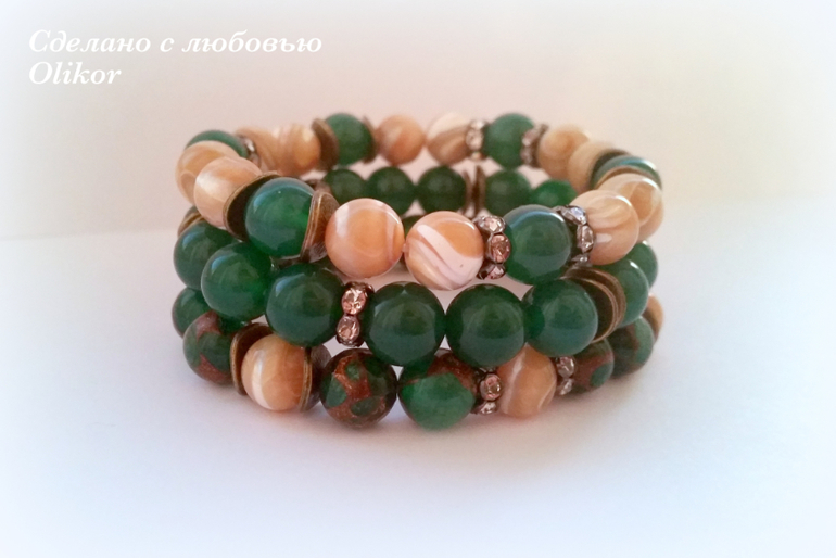 Бижутерия для слингомам. Слингобусы. Грызунки.Новенький комплект из зеленого агата, перламутра и яшмы мозаичной с благородной фурнитурой под бронзу. Сначала из этих камней родился подарок для одной девочки, а потом заказчица попросила и для себя сделать комплектик под серьги из зеленого агата.