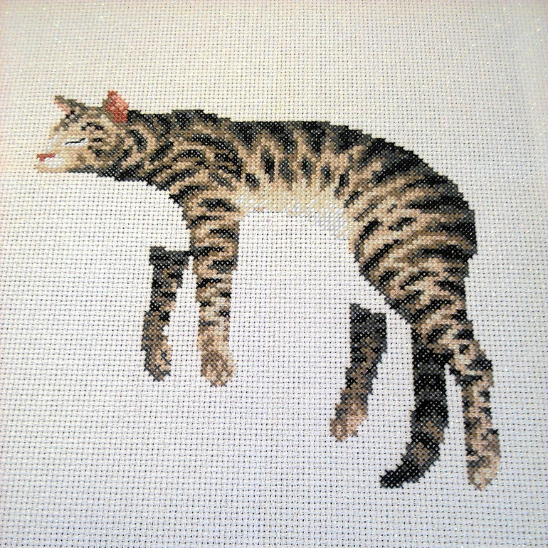 =)) я купила только 2 первых набора)) посмотрела на цены остальных — это кошмар.. Скажем, маленькая вазочка с цветами стоит от 400 руб и до бесконечности (( И решила я лучше покупать по частям все..))) Благо — есть цветной принтер, чтобы схемки печатать. Вот этот кошак "Слишком устал" в наборе стоит от 800 руб только в интернет-магазинах, в городе у нас нет. У меня на него ушло около 300 руб, при том, что я купила канву с люрексом (не было простой белой), а она подороже.В общем, в планах точно так же со всеми собранными схемами поступать =)