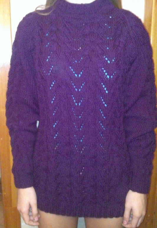 Наконец- то закончила! Вязался довольно долго- времени совсем нет, на работу вышла.Вязала специально по просьбе дочки для лыжных прогулок и катания на катке, удлиненный, под куртку тонкую,; связан снизу вверх регланом( первый раз так вязала, обычно сверху реглан вяжу).Пряжа Alize Lanagold Classic, оказалась довольно объемной, пуловер получился толстеньким и очень теплым))